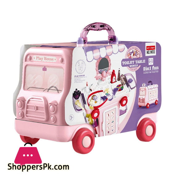 2 IN 1 Pretend Play House Toilet Table Mobile Makeup Beauty Cartoon Bus