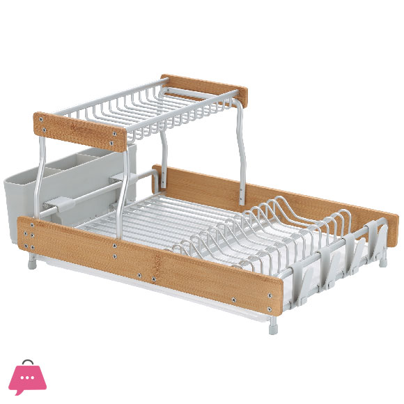 2 Tier Aluminum Dish Rack with Bamboo Frame