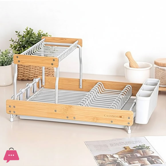 Made from high-quality bamboo wood, this dish rack features a simple and modern design that suits any kitchen.