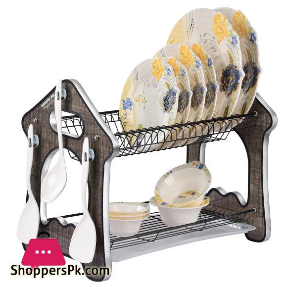 Glam Your Home with this Quality & unique 3 tier Mat Black Color dish rack. The three tier dish rack will bring orderliness with a twist of elegance to your kitchen or dining table. It is designed for easy access of the required piece with no risk on creating a mess since most dinner sets are usually fragile and delicate. Its is equipped with One drainer tray on lower tier to help catch draining water from wet dinners without spillage . Has hooks to hang goblet and cutlery cup.