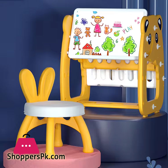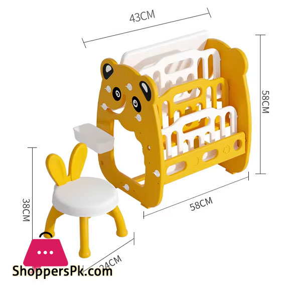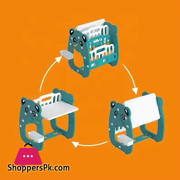 3 in 1 Plastic Indoor kids Study Desk Learning Easel Board with Book Shelf with Chair
