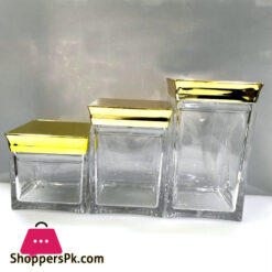 3 Pc Golden Top Acrylic Jar Set