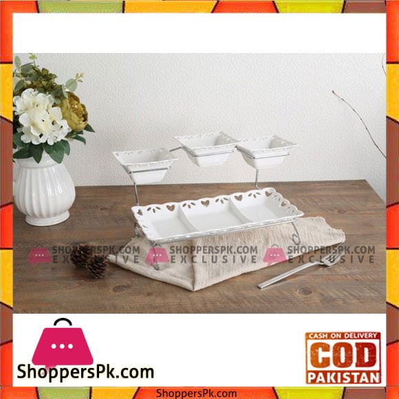 3 Pcs Sauce Bowls & 3 Section Plate With Stand