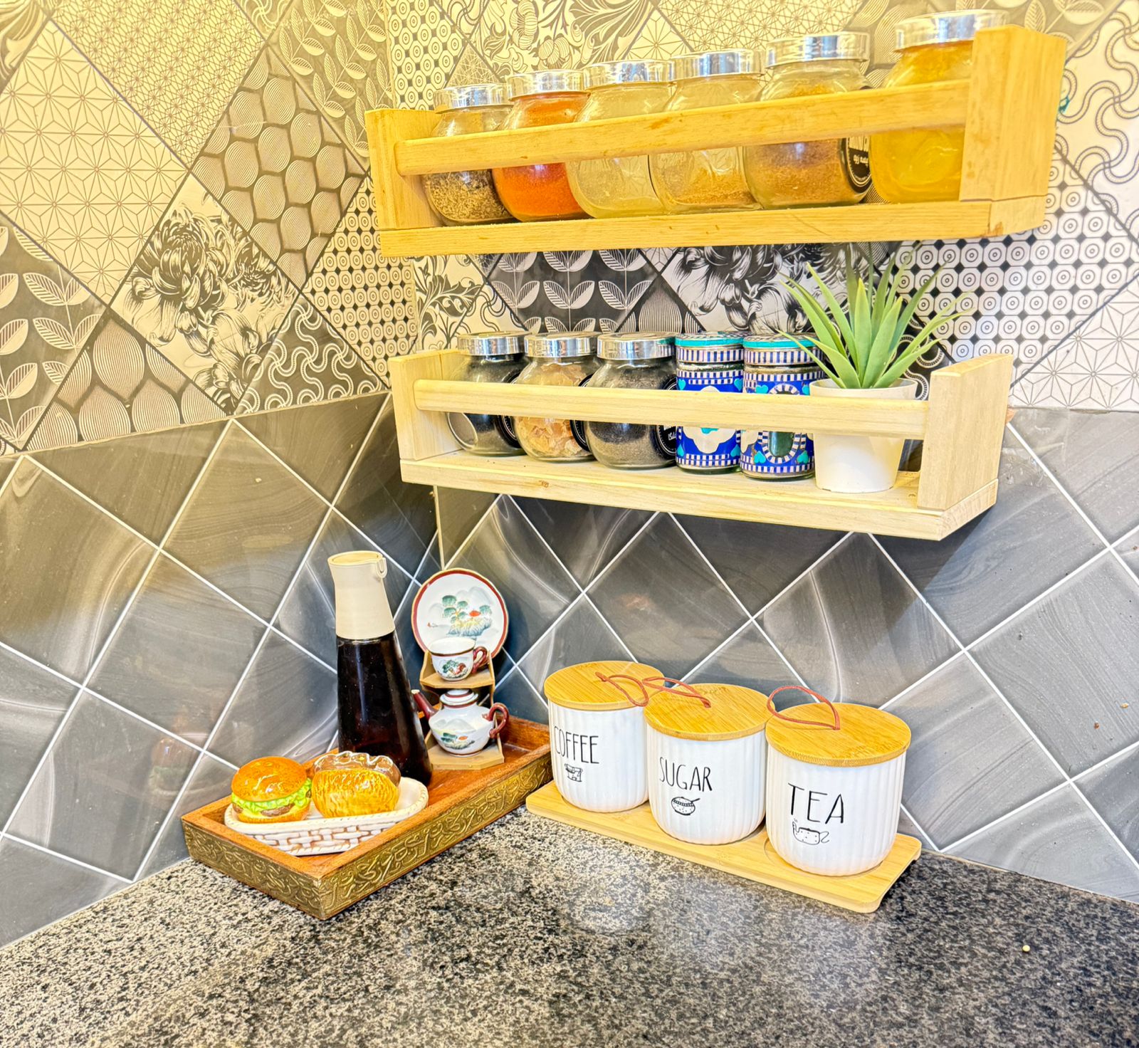 3-Piece Porcelain Canister Set With Wooden Lids Tray And Spoon