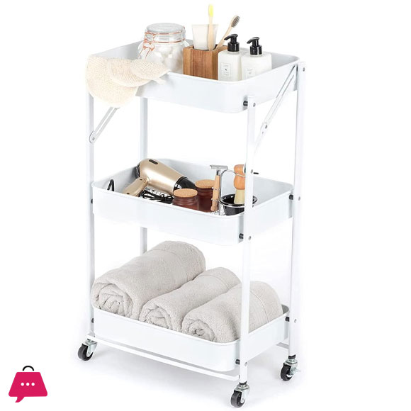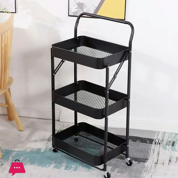 3-Tier Foldable Storage Trolley Metal Rolling Cart