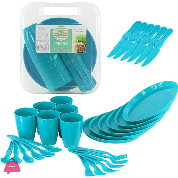 - LIGHTWEIGHT: The 31 piece picnic set may contain a lot of dinnerware but it’s incredibly lightweight, packs away neatly and compact, and is easy to carry. Step up from disposable dinnerware. Great for everyday use, patio, and poolside