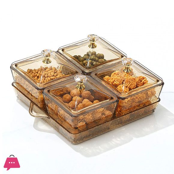 4 Grids Dry Fruits Tray Food Storage Organizer Food Storage Box Divided Serving Container