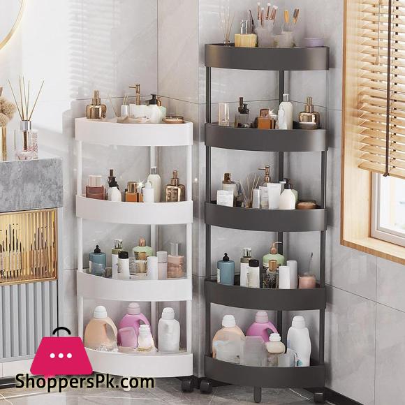 4-Layer Multipurpose Plastic Corner Rack Metal Pipe Floor Corner Shelf Basket