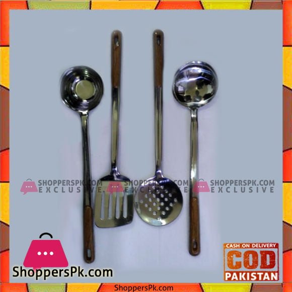 4 Pcs Stainless Steel Wood Handle Cooking Spoons