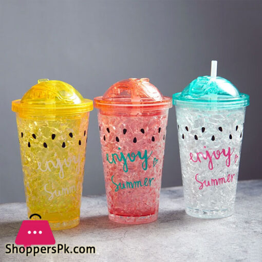 Straw Broken Ice Water Bottles Watermelon Iced Plastic Kettle Office Home Creative Juice Drink Milk Water Bottle with Lid – 600ML
