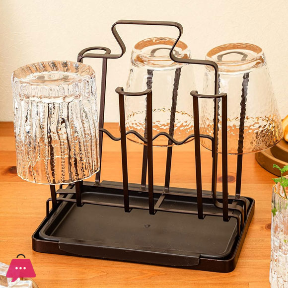 6 Hook Metal Cup Drying Rack Mug Tree Stand Organizer Whiskey Wine Glass Cup Dryer Rack for Kitchen Counter Storage Display Stand with Drain Tray