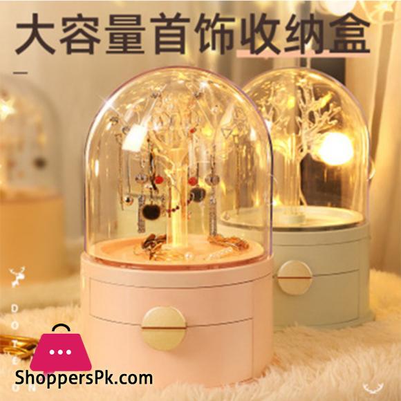 Acrylic LED Lamp Jewelry Makeup Box 360 Degree Rotating Jewelry Earrings Storage Organizer Drawer Desk Dust proof Jewel Shelf