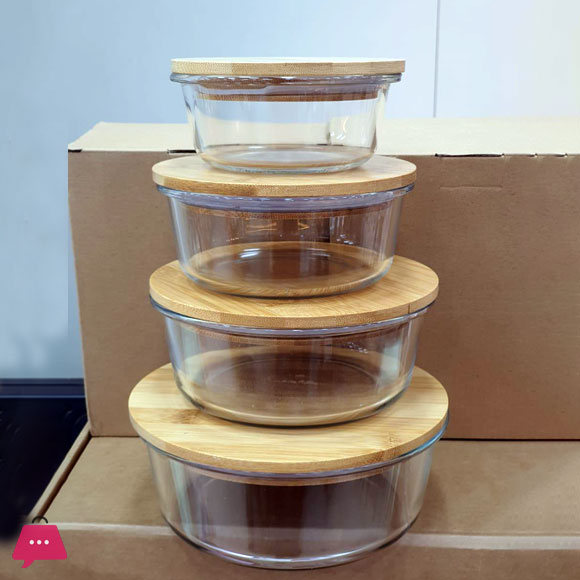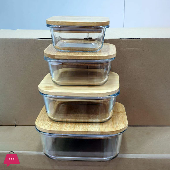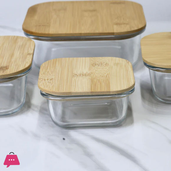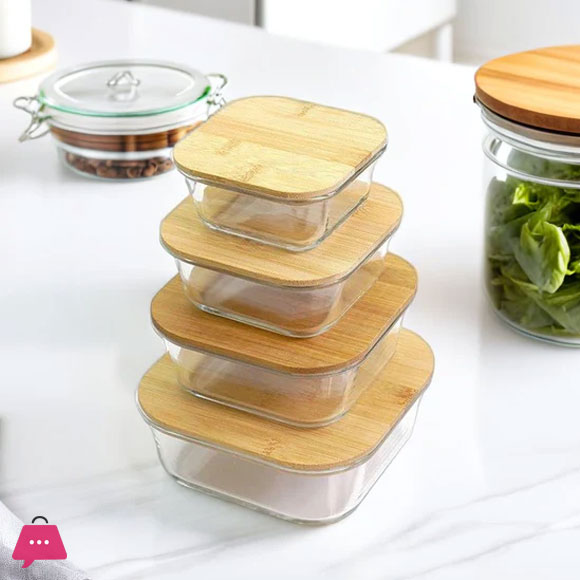 Airtight Glass Storage Containers Bamboo Lid Round & Square Set of 4