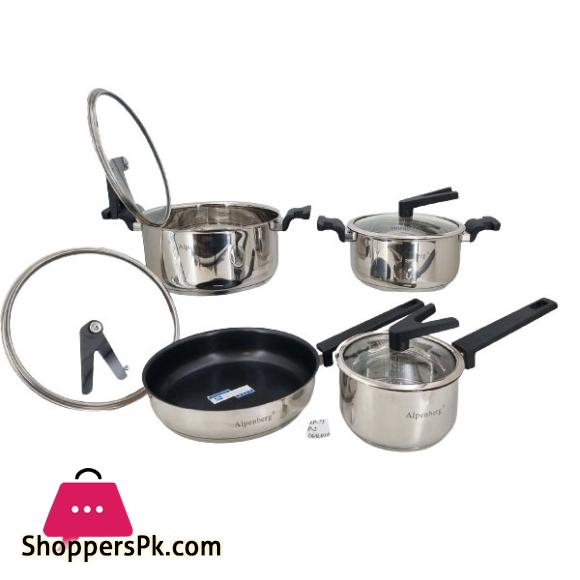 Alpenberg 8Pcs Stainless Steel Cooking Pots/Pans Set With (V-Knobe) HP75