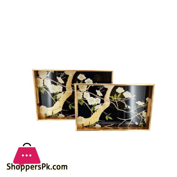 Angela 2Pcs Set Of Black & Golden Rectangular Serving Tray RY97