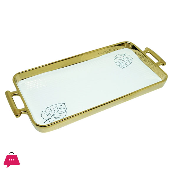 Angela Ceramic Rectangular Platter Large Golden/Silver