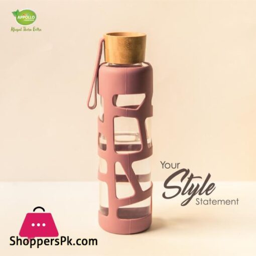 - A durable water bottle made of borosilicate glass prevents cracks.
