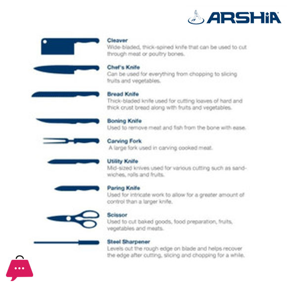 Arshia German Steel 10pc Kitchen Knife Set Non Stick Sharp Blades – 1339