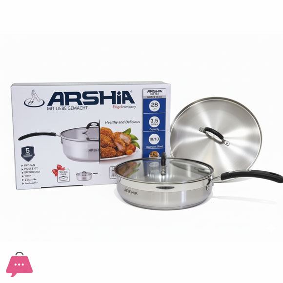 Arshia Stainless Steel Double Handle Fry Pan – 28cm 3085