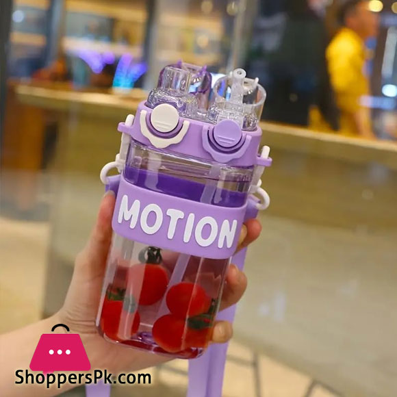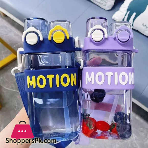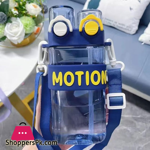 Baby Bucket Kids Plastic Dual Straw Water Bottle with Strap 550ml
