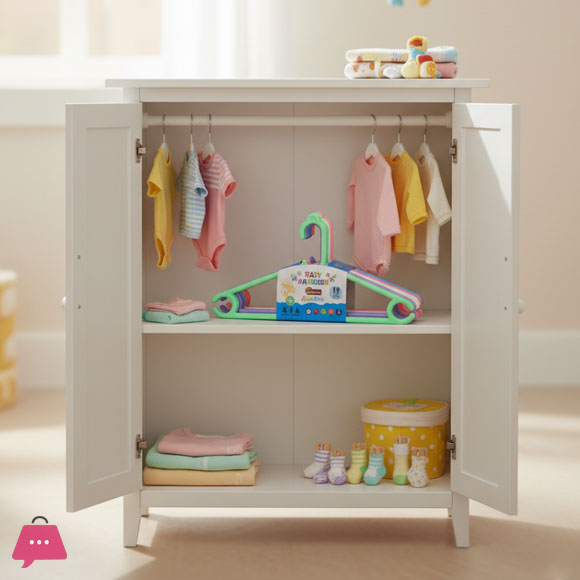Organize your little one’s wardrobe with this set of 10 colorful baby hangers. Designed to fit infant and toddler clothing, these hangers are made from strong yet lightweight plastic—perfect for keeping baby clothes neat and wrinkle-free.