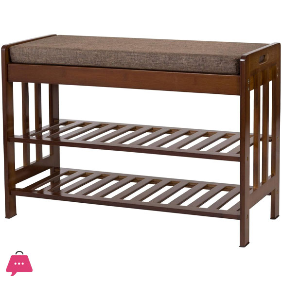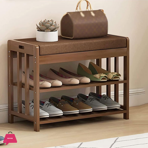 Bamboo 2 Tier Shoe Rack and Storage Bench Organizing Rack Bench Seat Entryway Shoe Bench