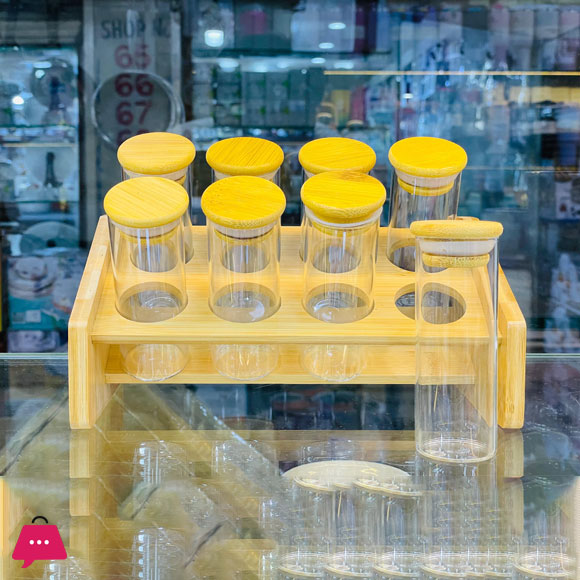 Be the first to review “Bamboo Glass Tube Spice Rack with Stand 8 Piece” Cancel reply