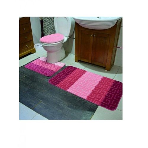3 Pc BROWN Bathroom Set Bath Mat RUG, Contour, and Toilet Lid Cover, with Rubber Backing