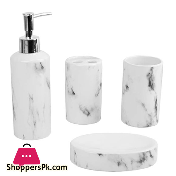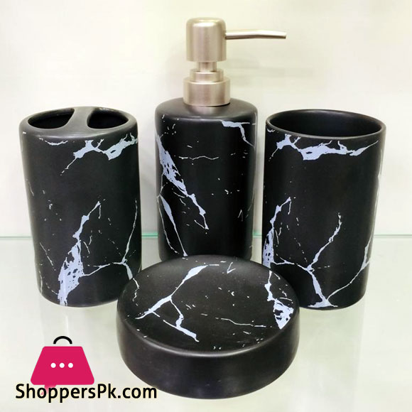 Beautiful Marble Design Ceramic 4 Pcs Durable Bath Accessory Set White and Black Color Available