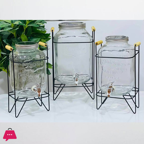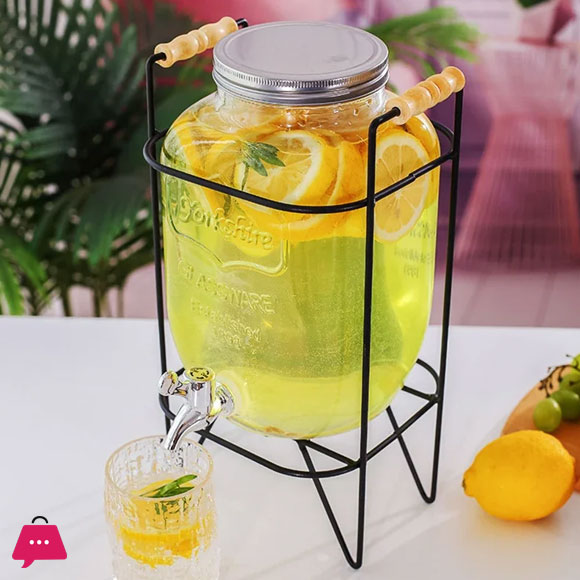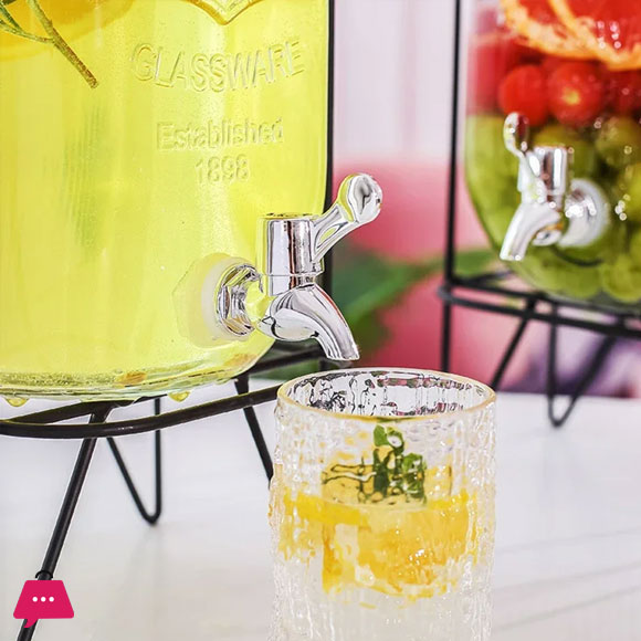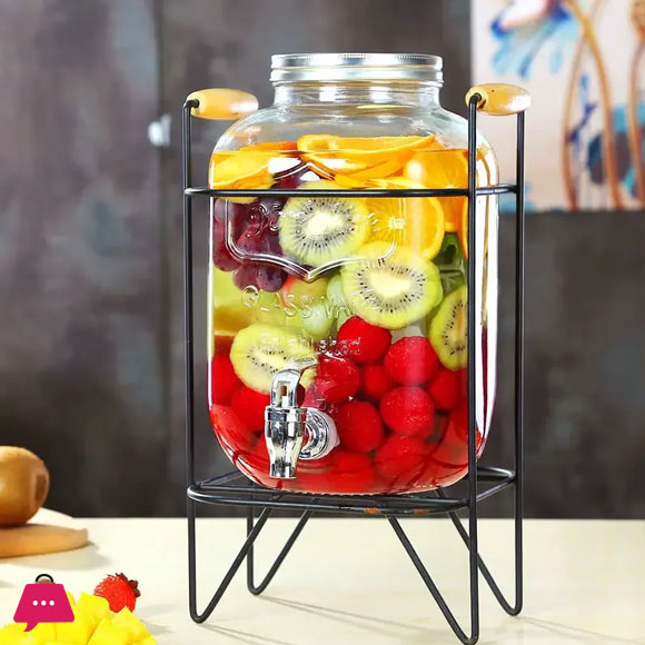 Beverage Bucket with Fauct 8L Glass Jar Party Juice Dispenser Glass Drink Beverage Dispenser with Tap and Stand