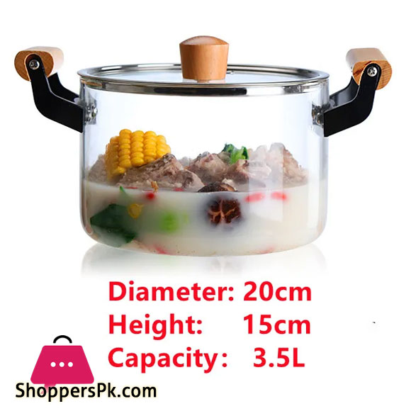 Borosilicate Glass Casserole Cooking Pot with Wooden handle Pyrex Glass Fireproof 3.5Liter