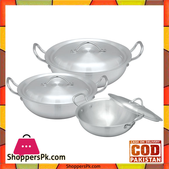Bravo Round Base Karahi – 202 | 3 Wok Set