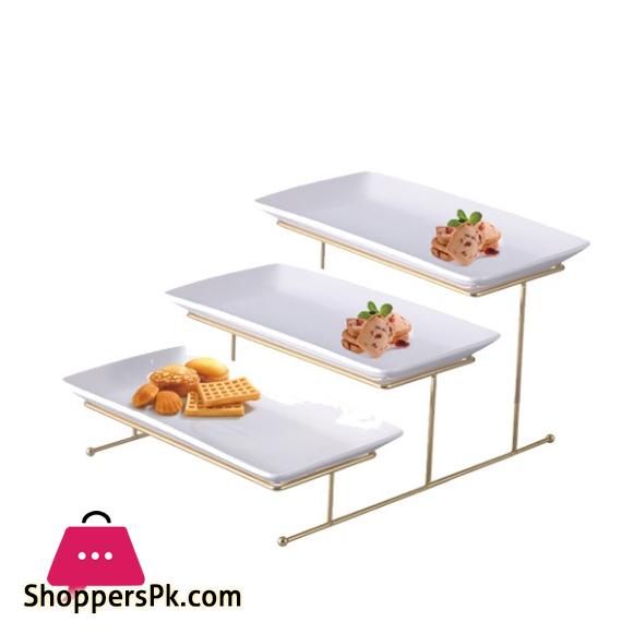 Brilliant 3 Tier Ceramic Rectangular Platter Gold Stand BR0266