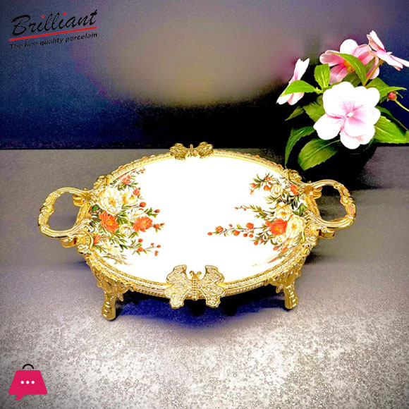 Add a touch of elegance to your home with the Brilliant Decorative Serving Platter. Beautifully crafted with intricate golden handles and delicate floral detailing, this tray perfectly combines luxury and functionality.