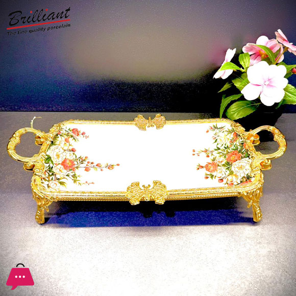 Add a touch of elegance to your home with the Brilliant Decorative Serving Platter. Beautifully crafted with intricate golden handles and delicate floral detailing, this tray perfectly combines luxury and functionality.