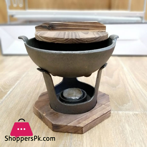 Cast Iron Pot with Wood Underline Cast Iron Casserole Dish 10 CM