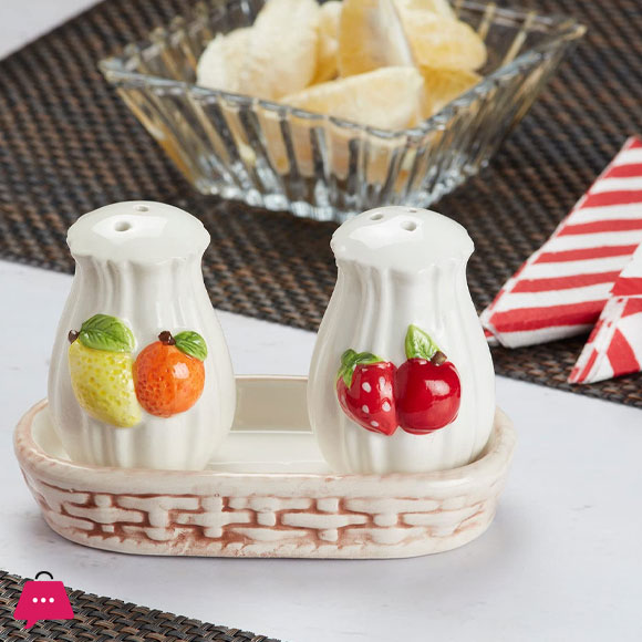 Ceramic Fruite Salt and Pepper Shakers Set with Tray for Dining Table Used as Namak Dhani
