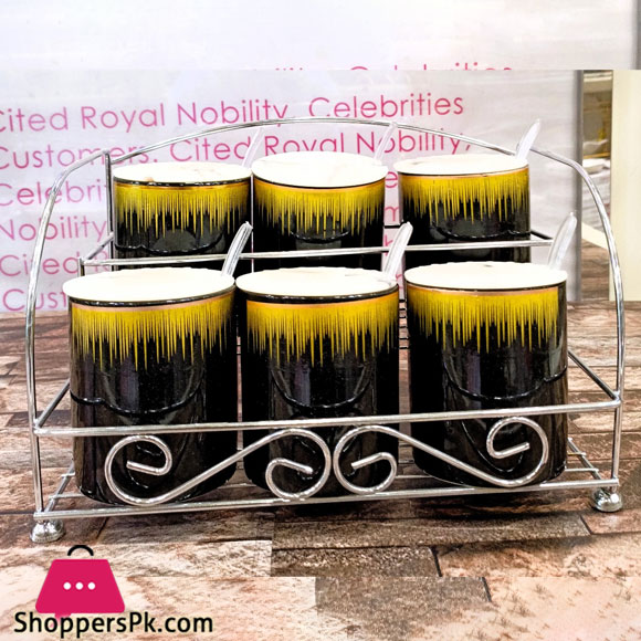 Ceramic Spice Rack Set of 6 Plastic Lid