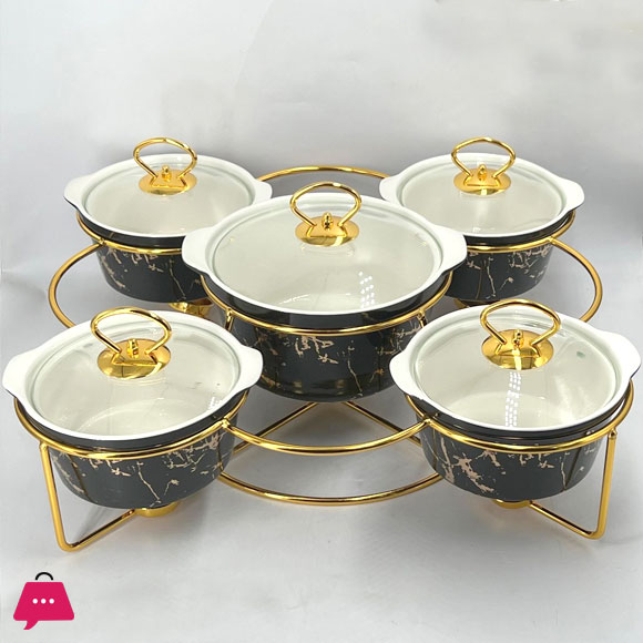 Be the first to review “Chafing Dish Buffet Set Ceramics Chafer with Marble Finish Chafer and Buffet Warmer Round – 5 Pcs” Cancel reply