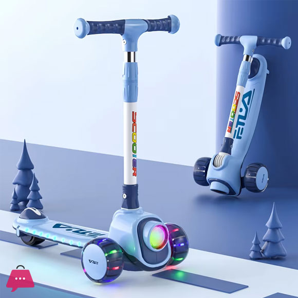Kids 3-Wheel 4 Levels Adjustable Height Kick Scooter with LED Light Up Wheels MG03A