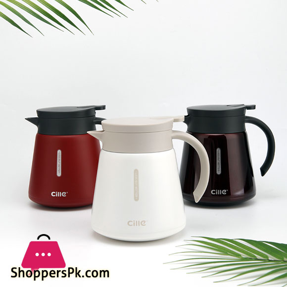 Cille 800ml Insulated Thermos Coffee Pot Tea Pot Stainless Steel Double Wall One Touch Lid Coffee Pot