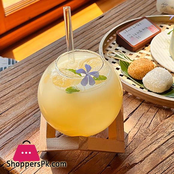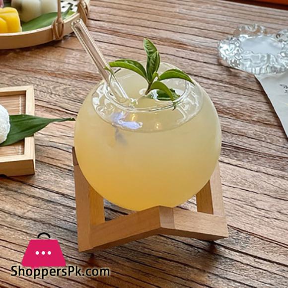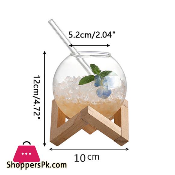 Cocktail Glass Cup With Wood Stand Creative Bar Glassware Drink Ronud Ball Mug Fruit Moon Juice Tumbler