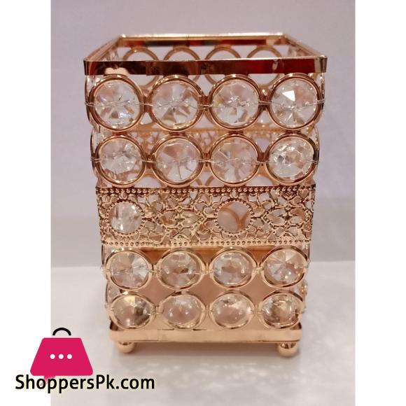 Crystal Makeup Brush Liner Mascara Holder Organizer Square Design Cosmetics Tools Container Comb Holder Pen Pencil Holder Storage Holder for Home Dressing Table and Birthday Gift