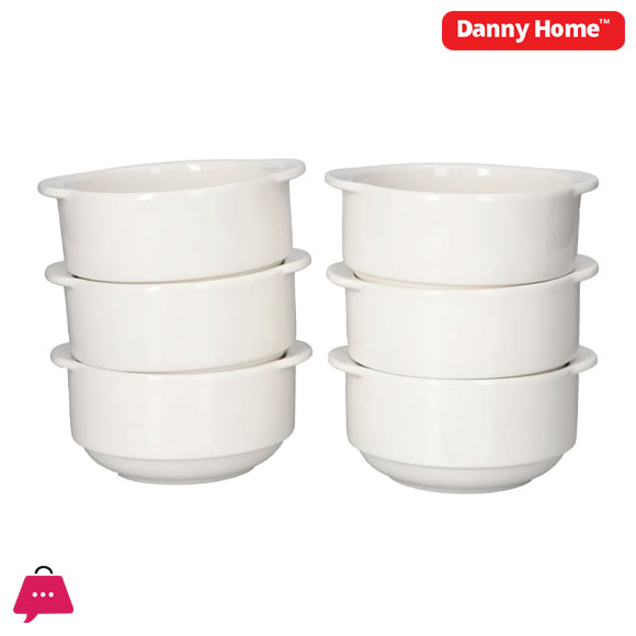 Stunning, glossy & round elegant Ceramic Soup Bowl Set of 6, with handles.