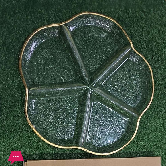 Danny Home Gold Rimmed 5 Division Flower Design Glass Serving Dish RW10-01