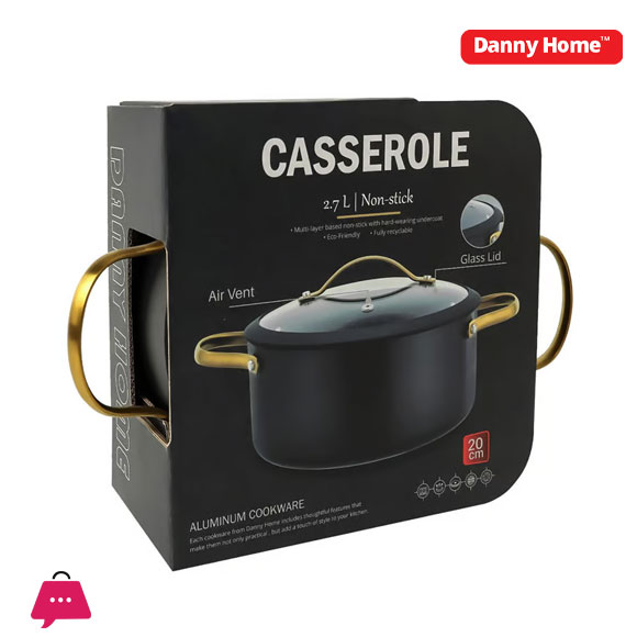 Danny Home Modern Black  4.5L Casserole Pot with Glass Lid 24cm