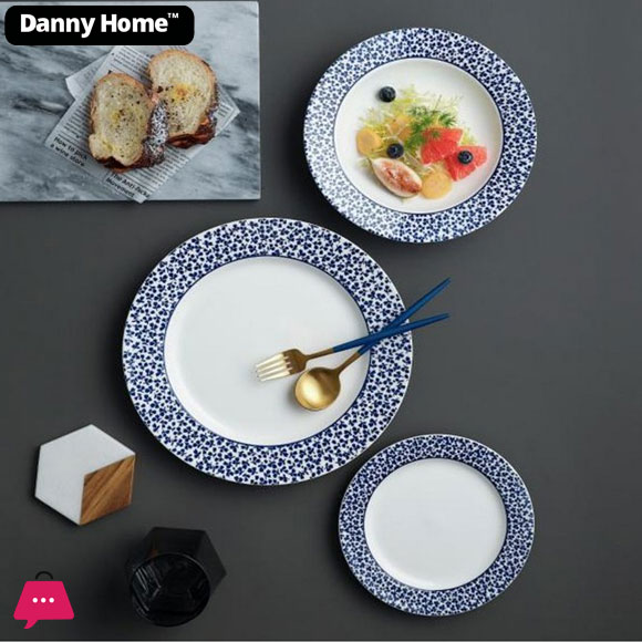 Danny Home White Blue Porcelain 18 Piece Plate Set Dinner Set