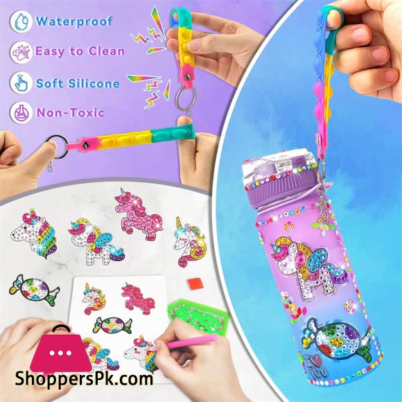 【Decorate Your Own Water Bottle】:Our DIY Water Bottle Kits feature themes that little girls love, including unicorns and mermaids.The kit includes vibrant and sparkling diamond stickers that add a touch of glamour to the water bottle designs. Let your child’s creativity shine with these eye-catching decorations,and provide them with hours of happy time.