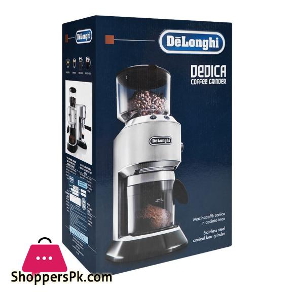 The conical burr grinder offers 18 grind sizes for different coffee beverages from espresso ground, drip ground over to french press ground.