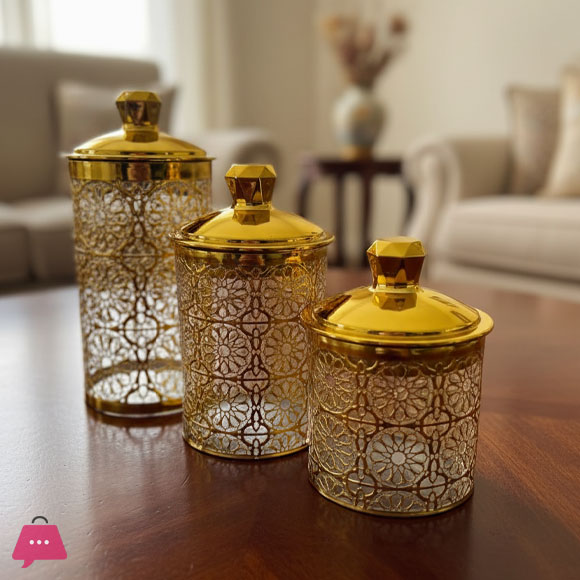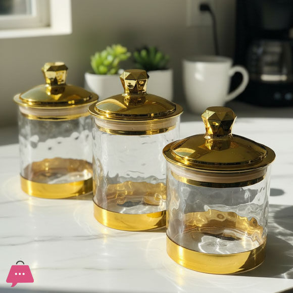 Be the first to review “Deluxe Golden Airtight Jar Set of 3” Cancel reply